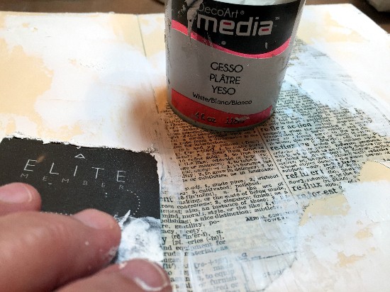 fingers, add a bit more DecoArt Media White Gesso randomly on the pages. If using the brush, pounce the brush on the